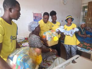 As part of its annual Christmas tradition, MTN Ghana, Upper East Regional Branch, on Thursday, December 26, 2025, visited the maternity wards of the War Memorial Hospital in Navrongo and the Upper East Regional Hospital in Bolgatanga to share love with mothers who delivered on Christmas Day. The visit formed part of MTN Ghana’s long standing initiative to celebrate the birth of Christ by supporting new mothers and their babies during the festive season. Management and staff of the telecommunications giant presented beautifully packaged hampers filled with essential baby care items, including baby soaps, towels, diapers, wipes, baby drums, pomade, feeding bottles, and other necessities.